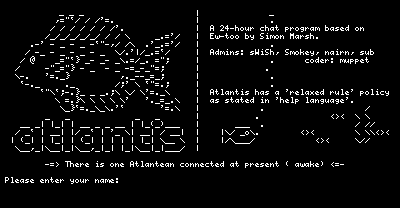 Originally based on Sensi-Summink, but extended heavily, first by Swish, and then later by Muppet, Atlantis was a smaller talker with a core of regulars who were prepared to put up with a lot of sarcasm and in-jokes - but it still welcomed newbies if they didn't mind the "relaxed rules".